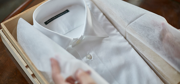 シャツをお届けする際に、桐箱に入れての発送をご希望のお客様は、[ 桐箱を付ける] を選択してカートへお進みください。